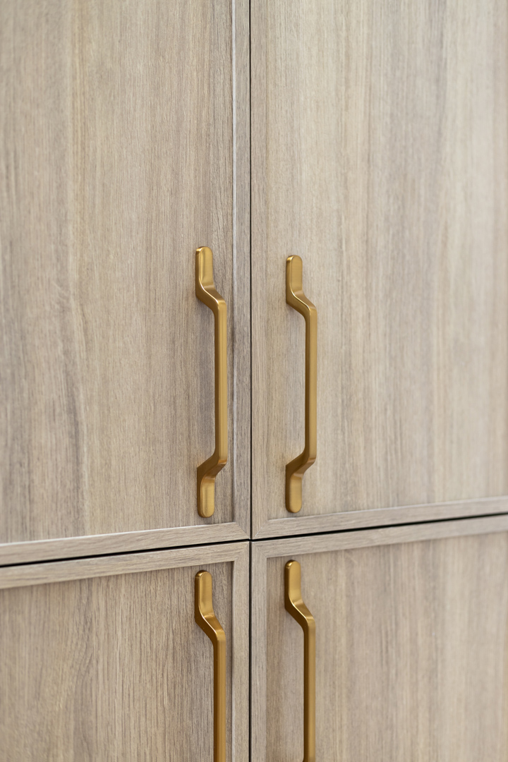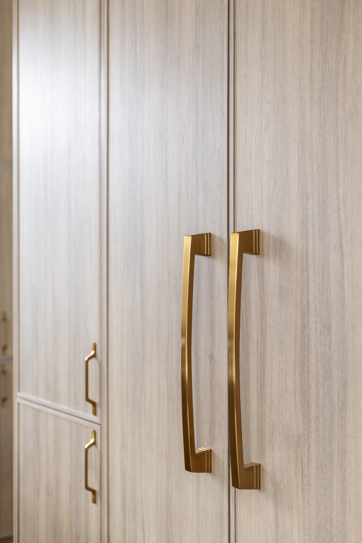 - Hardware: Blum hardware, known for its quality and reliability, is used throughout the kitchen. The 110-degree hinges and 550mm undermount slides offer a smooth, seamless operation of cabinet doors and drawers, emphasizing functionality without compromising on style.