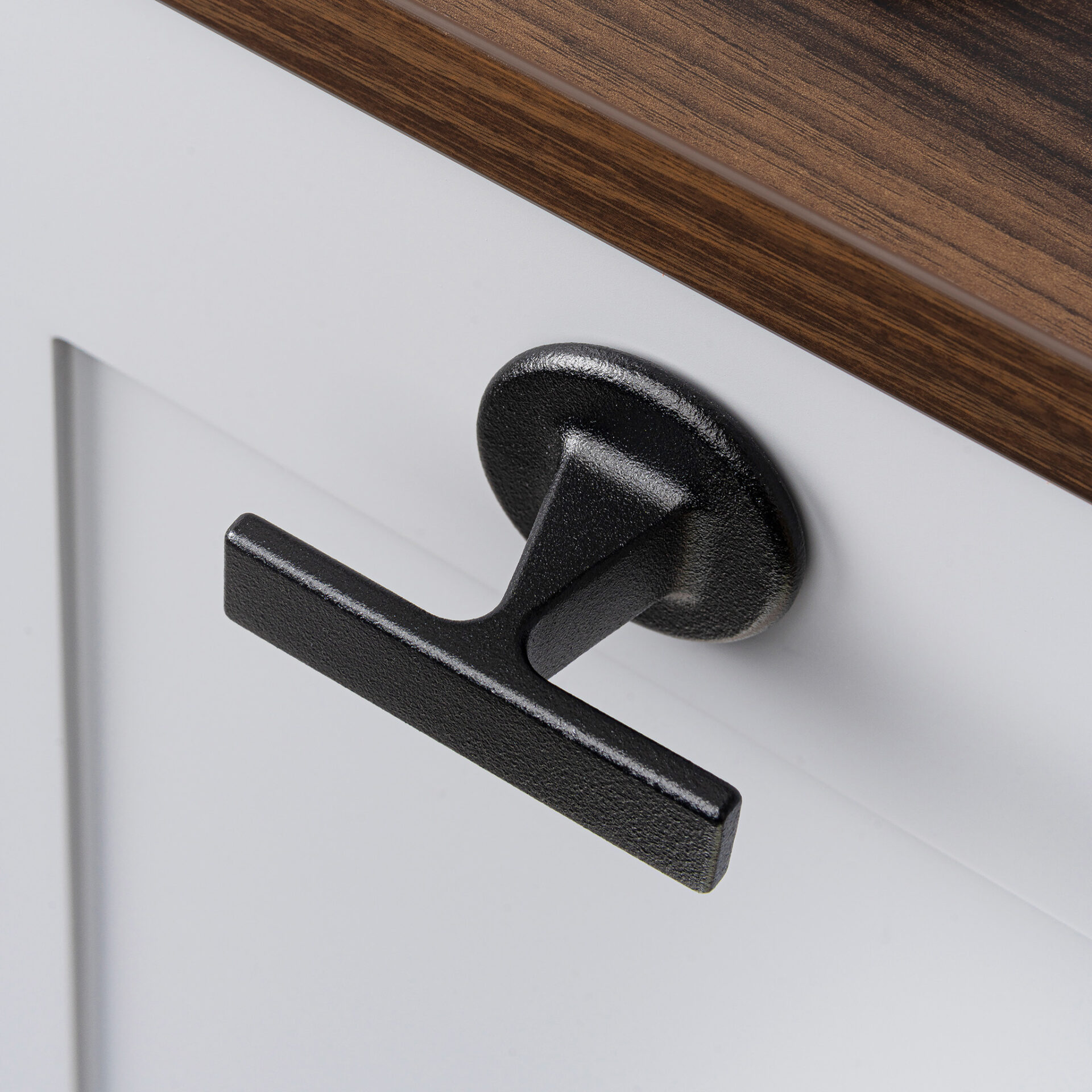Designed by Bernat Llonch, the Oto handle comes equipped with a texturized black finish. Manufactured in zamak, it’s a handle with a vintage style, either in an arched handle shape or a classic door handle. Oto’s robust appearance and its rounded edges lend it a contemporary touch, perfect for kitchens that stand out for their elegance and functionality. In areas where rustic furniture is predominant, Oto acts as an accessory which adds an aesthetic balance.