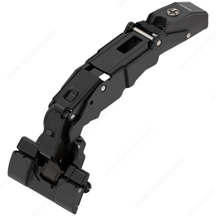 The CLIP top BLUMOTION 155° wide angle hinge sets new standards, and its new design combines familiar adjustments with the highest quality of motion. Thanks to its sophisticated technology, the BLUMOTION dampening is compactly integrated directly into the hinge arm. The drilling dimensions remain the same. The result: a 155° hinge that provides complete satisfaction.