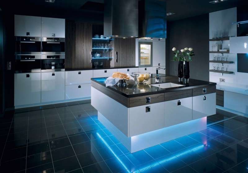 To achieve a more decorative effect, original methods can illuminate the countertop or the kitchen island’s base, adding an extra touch of visual appeal to the overall design.