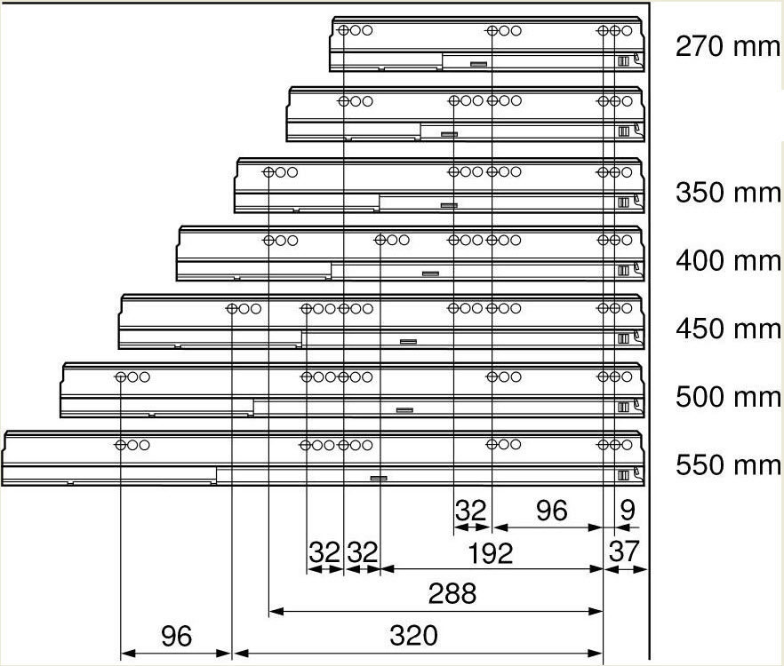 - 270mm, 350mm, 400mm, 450mm, 500mm, 550mm, 600mm, 650mm